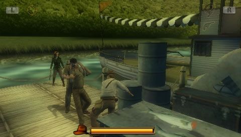 La jugabilidad mezcla combate cuerpo a cuerpo, tiroteos y momentos de plataformas. Puedes usar el látigo para pelear o interactuar con el entorno, lo cual le da bastante variedad 🔫🐍. Aunque los gráficos no son lo máximo de la PSP, cumplen bien y los escenarios están llenos de detalles arqueológicos chéveres 🏺✨. Tiene secciones bien cinemáticas donde escapas de avalanchas o derrumbes al estilo película 😮🎬.